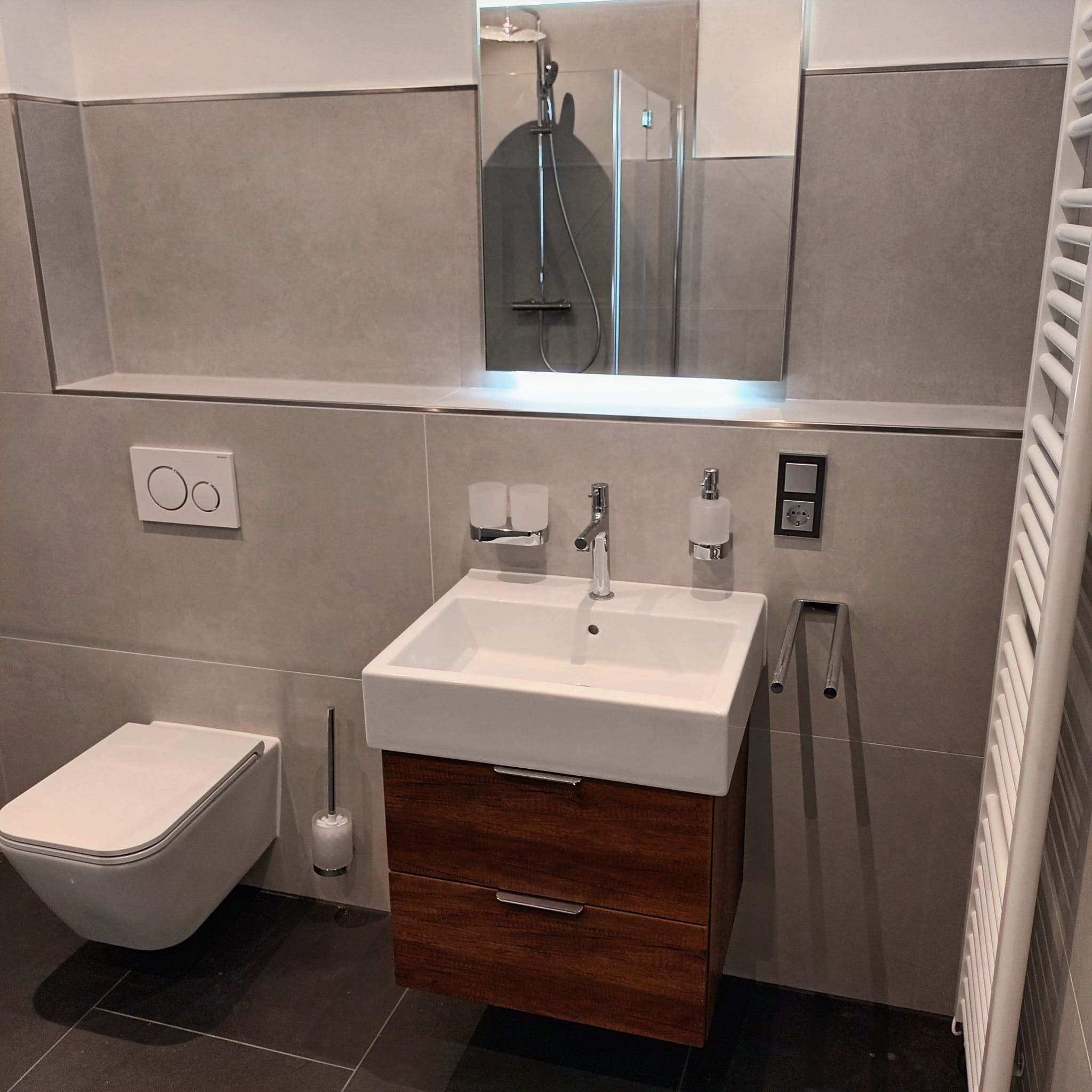In der Wohnung sind der Wohn-, der Schlafraum, sowie Dusche und WC barrierefrei nutzbar und mit einem Rollstuhl erreichbar. Die Balkonaustritte wurden mit nur 2 cm Schwellenhöhe ausgeführt.